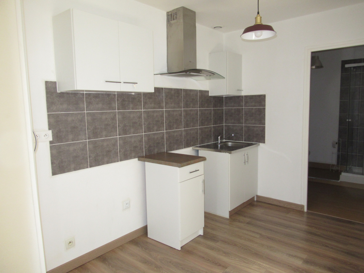Appartement en rez-de-chaussé centre-ville comprenant pièce principale avec cuisine amnénagée, une chambre et une salle d'eau avec wc.