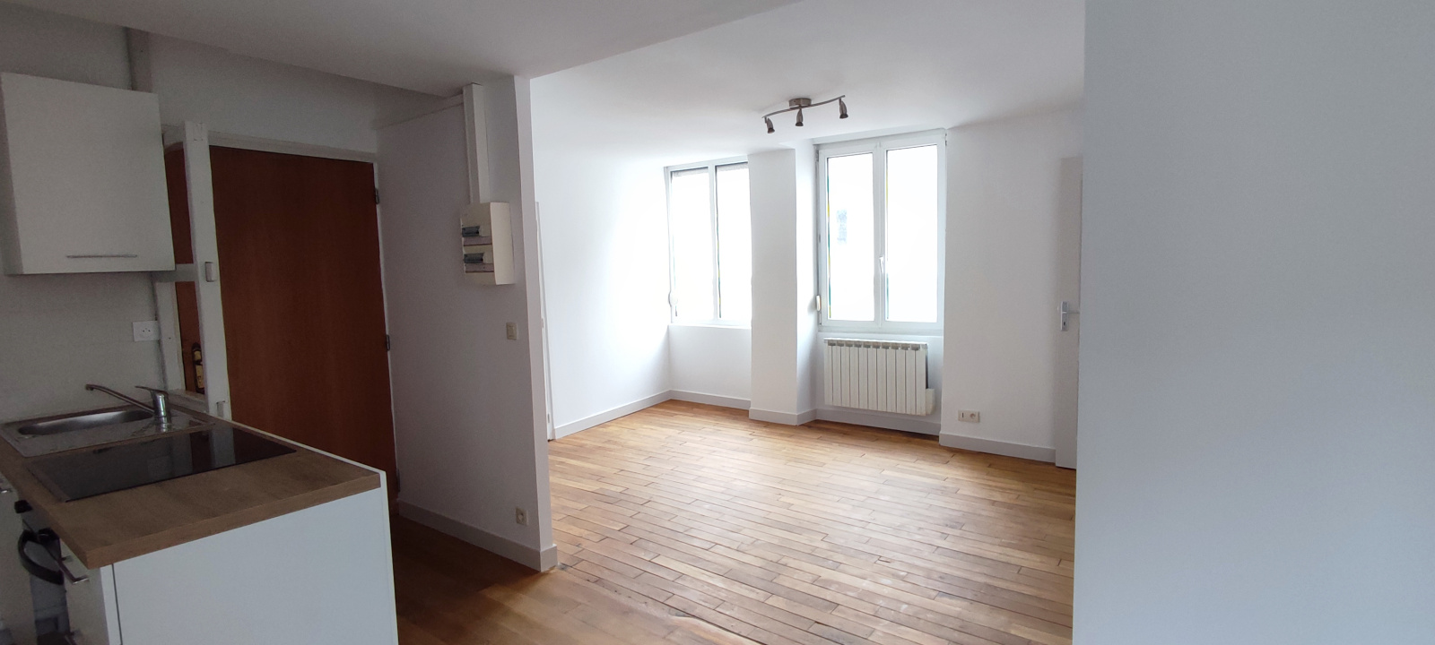 Appartement au centre ville, au 1 er étage, comprenant un séjour avec cuisine aménagée (plaque et four), une chambre et une salle d'eau avec wc.