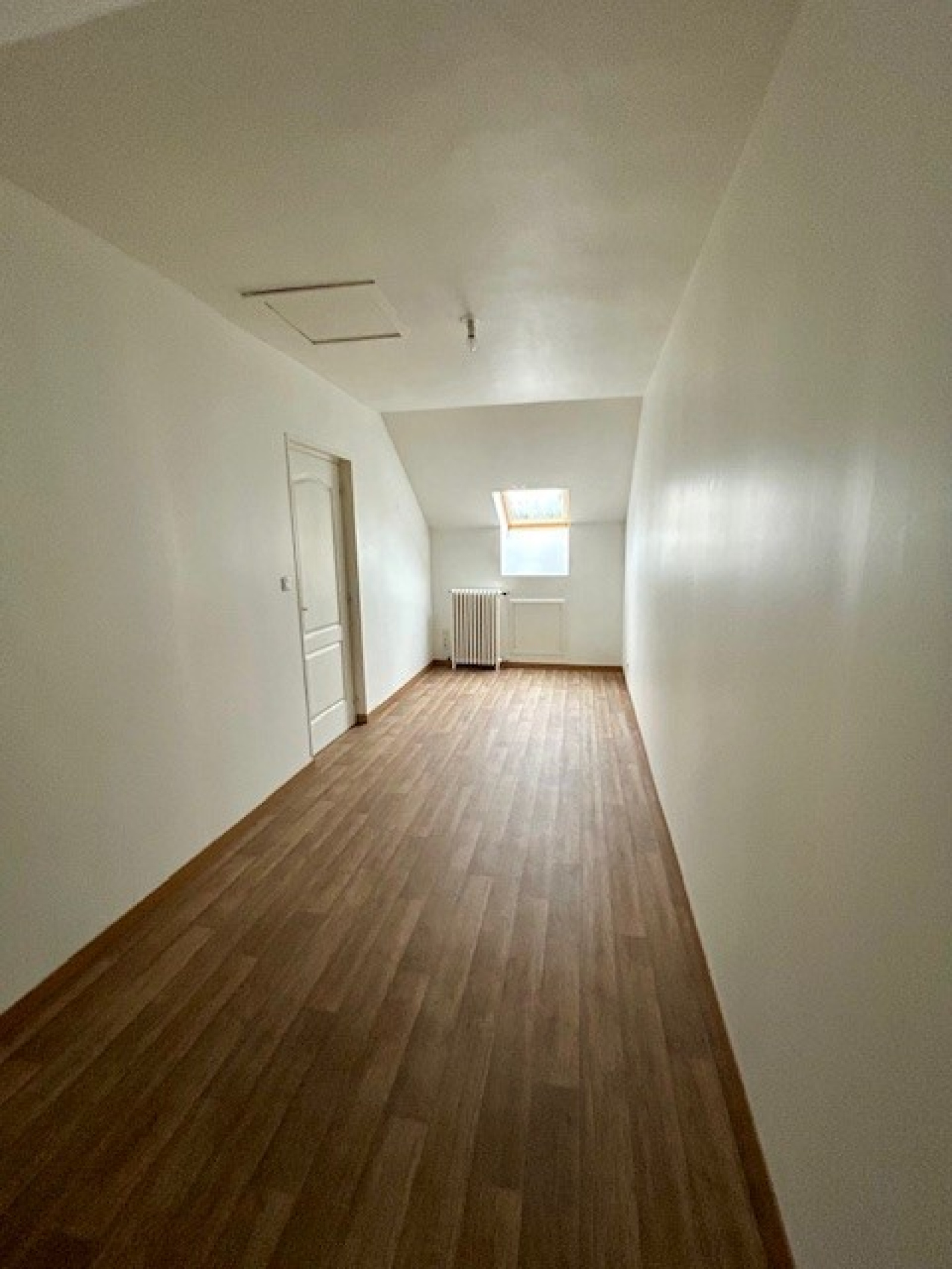 au 2ème étage, deux chambres. Bâtiment à usage de cave avec grenier. Cour gravillonée non attenante à la maison. Chauffage gaz de ville.
