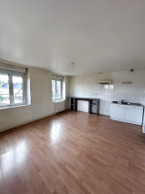 Immeuble à proximité des commerces et de stationnement : appartement situé au 2nd étage comprenant entrée, séjour avec coin cuisine, chambre, bureau, salle d'eau et WC. Chauffage collectif au gaz de ville et eau comprise.