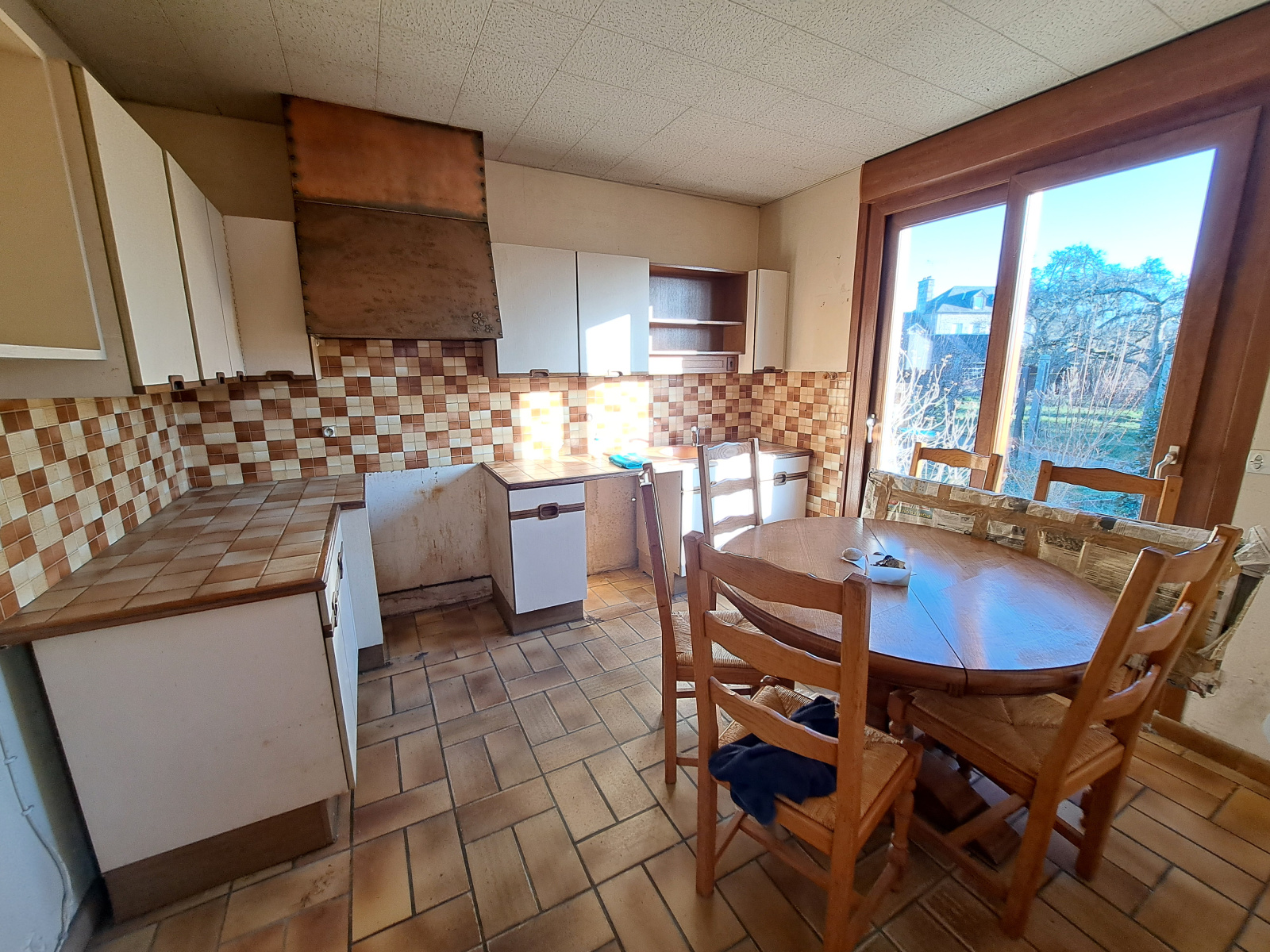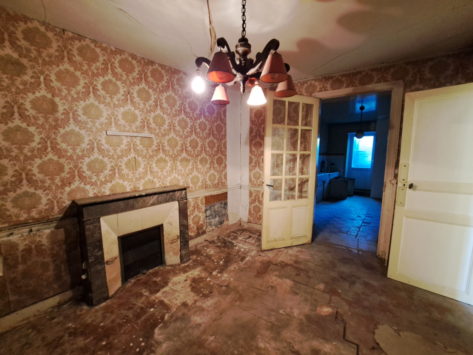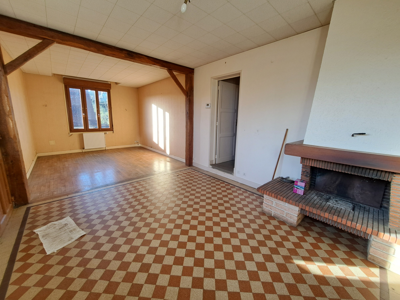 - au rez-de-chaussée : une entrée, un salon-séjour (à rénover), une cuisine (à rénover), garage de 40m² environ et un wc.